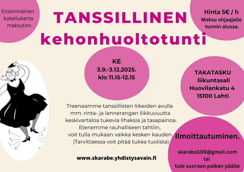Tanssillinen kehonhuoltotunti, keskiviikko.